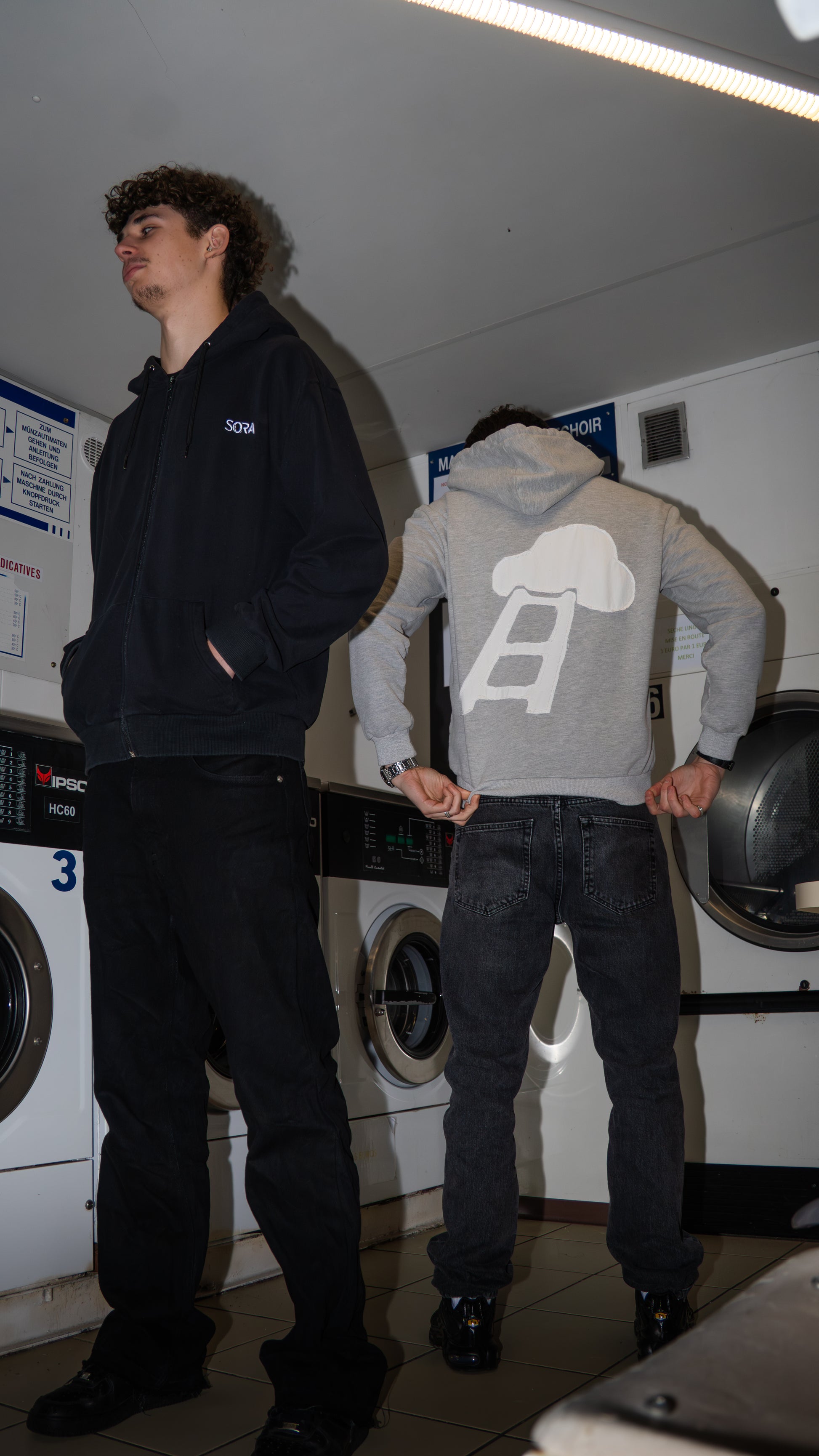 Ce sweat zippé SORA, conçu en molleton éponge 100 % coton (360gsm), allie confort et style avec une coupe droite pensée pour un porté à la fois décontracté et moderne. Sa capuche fixe protège du vent et ajoute une touche casual, tandis que la poche kangourou à l’avant offre praticité et chaleur.